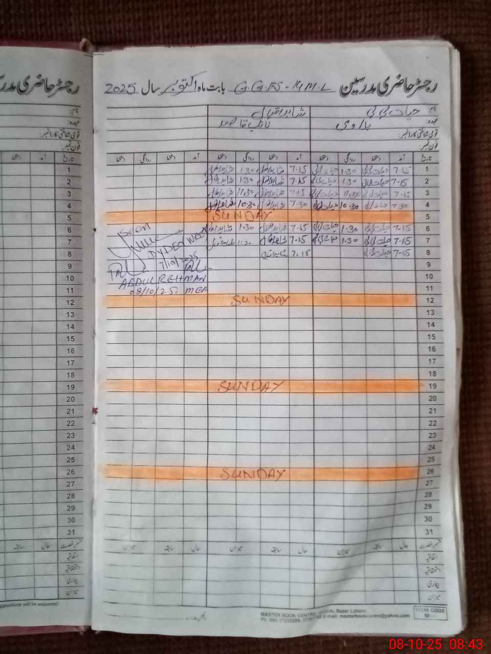 | CNIC | Full Name | Designation | R/C | Absence During Last Calender Month |