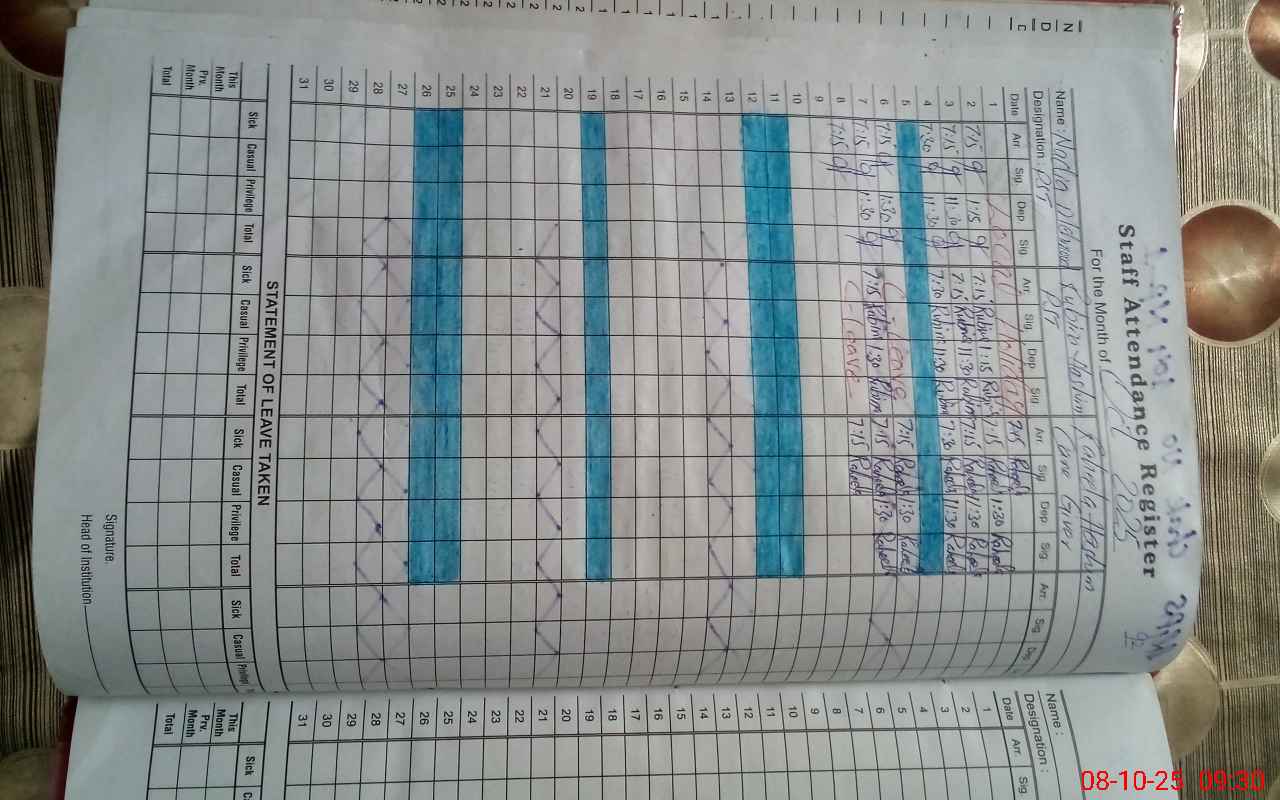 | Remarks (Use Separate Page if Required): ENROLLMENT TAKEN FROM ATTENDENCE REGISTERS OF STUDENTS ATTENDENCE OF STUDENTS CARRIED OUT BY HEAD COUNT | |||||
