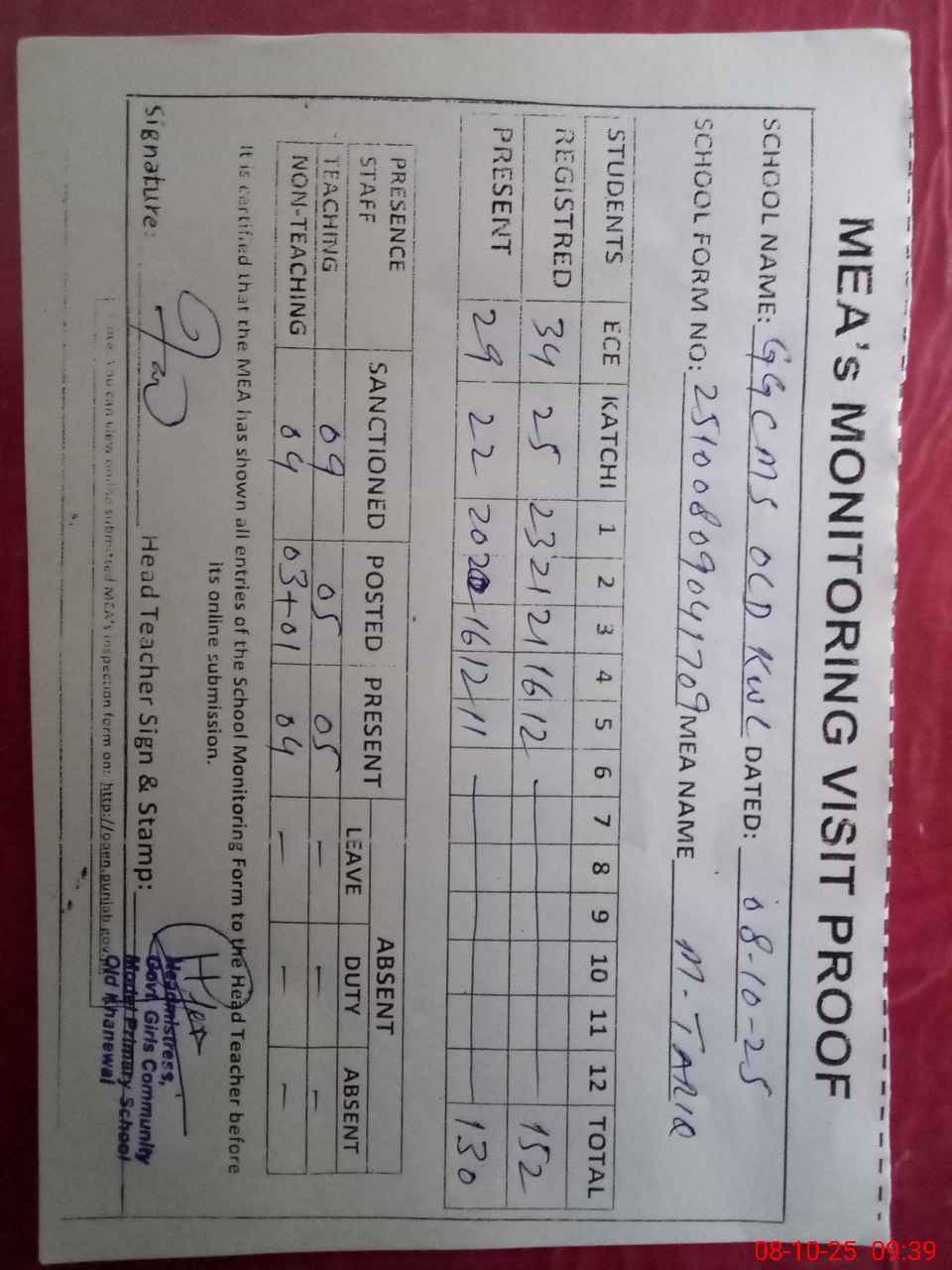 | EMIS Code: 36420356 | Name of School: GGCMS OLD KHANEWAL | |||