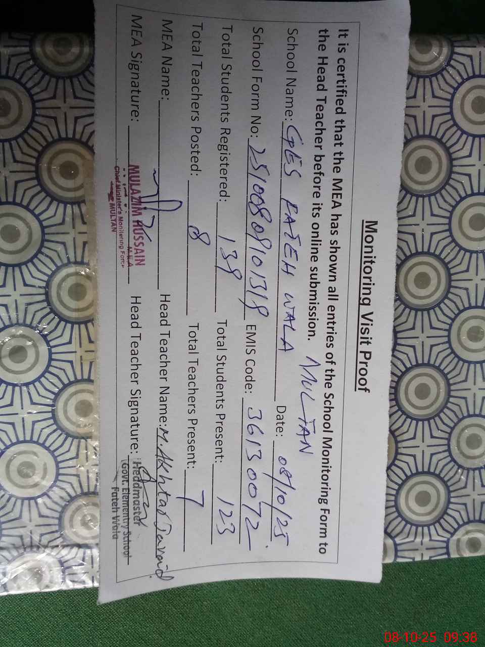 | EMIS Code: 36130072 | Name of School: GES FATEH WALA | |||