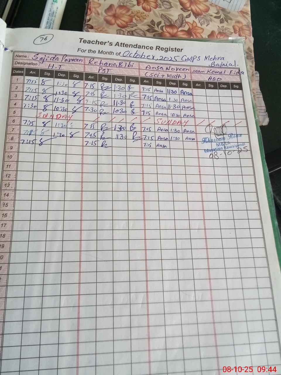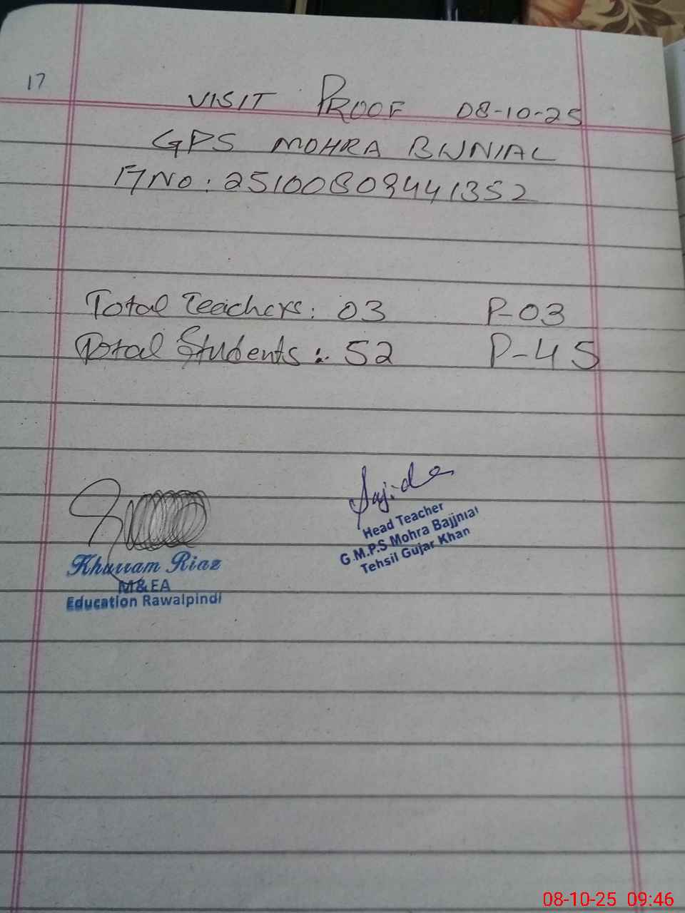 | Certified that this School was Inspected by the Undersigned MEA/DMO Today and the Information Stated Above is as Per Record. | |||||