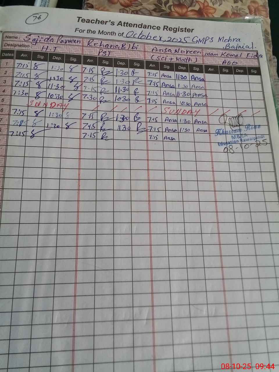 | Monitoring Date: 08-10-2025 | Start Time: 08-10-2025 09:36 AM | End Time: 08-10-2025 09:58 AM | Name of MEA: Kh**** Ri**** | |