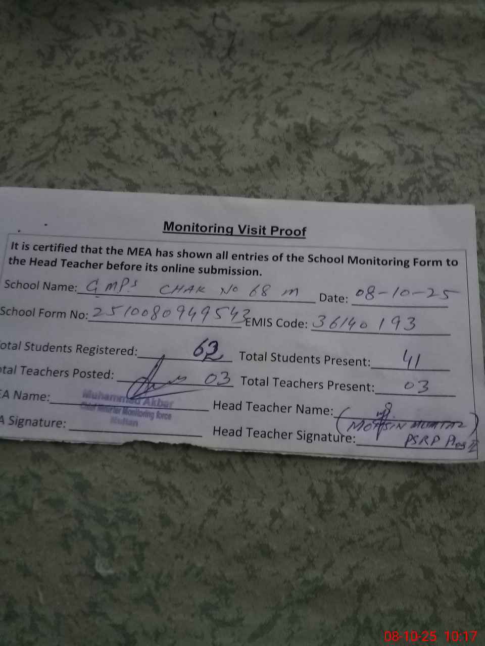| EMIS Code: 36140193 | Name of School: GMPS CHAK 68-M | |||