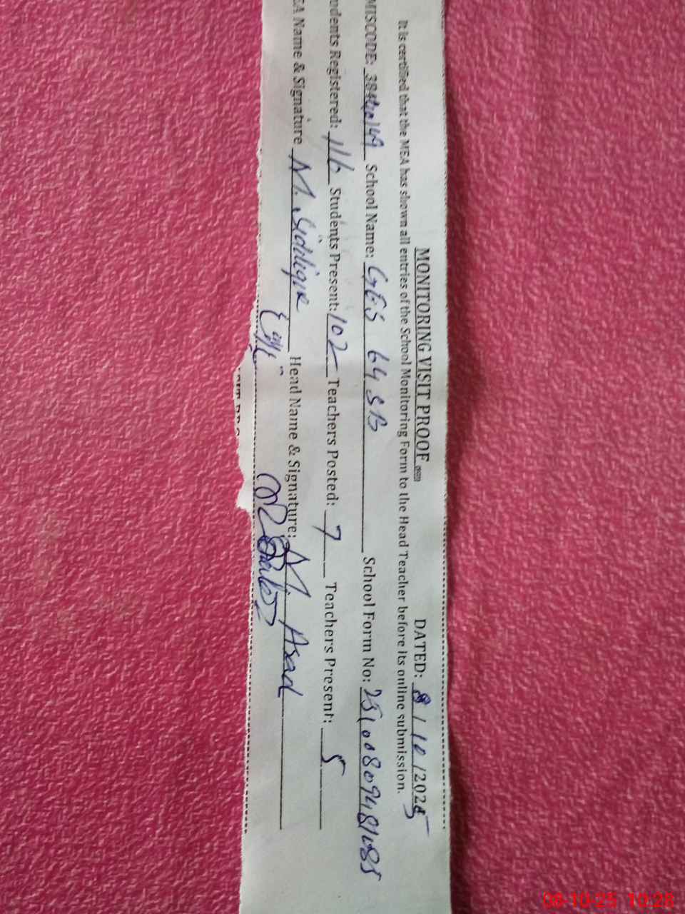 | Monitoring Date: 08-10-2025 | Start Time: 08-10-2025 09:48 AM | End Time: 08-10-2025 10:31 AM | Name of MEA: MU**** SI**** | |