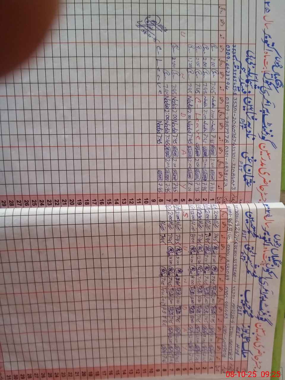 | CNIC | Full Name | Designation | R/C | Absence During Last Calender Month |