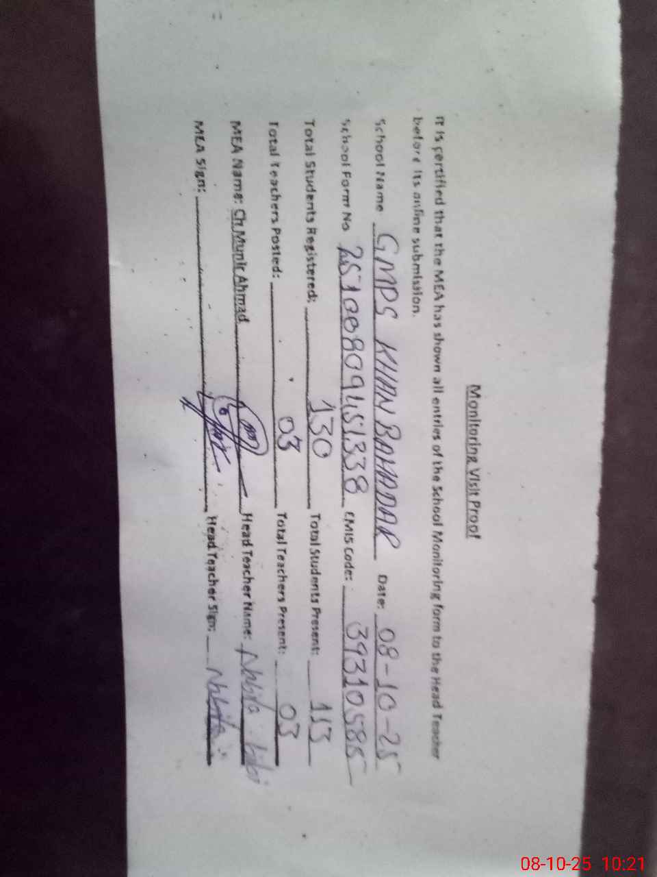| EMIS Code: 39310585 | Name of School: GMPS KHAN BAHADAR | |||