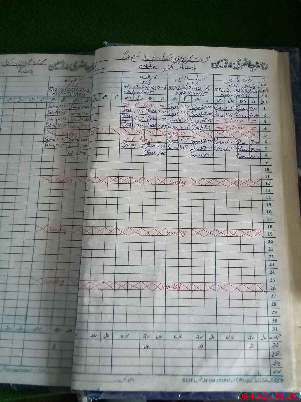 | CNIC | Full Name | Designation | R/C | Absence During Last Calender Month |