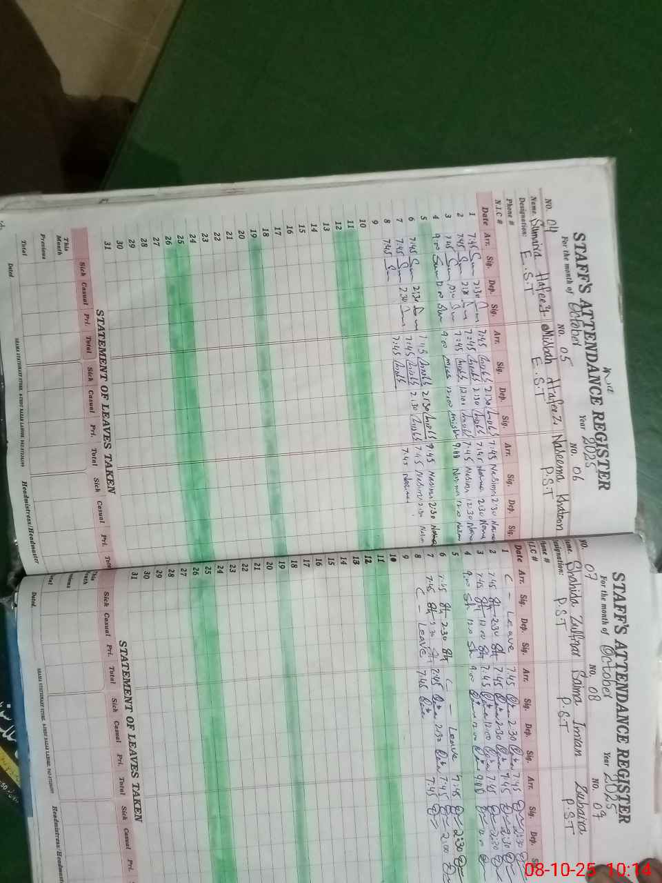 | Remarks (Use Separate Page if Required): Zunaira Ajmal PST long absent since 1st May 2025 no action | |||||