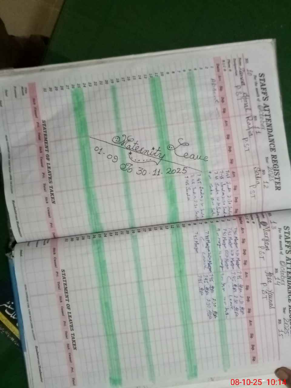 | Leave | Duty | Absent | Maternity | Medical | Ex- Pak |