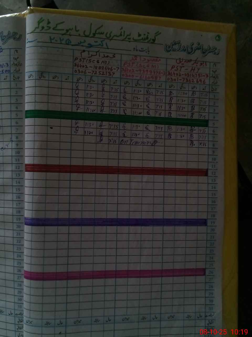 | Name: Ab**** Si**** Designation: (School Headmaster's/Headmistress's) PST Phone/Cell Number: 03**** |