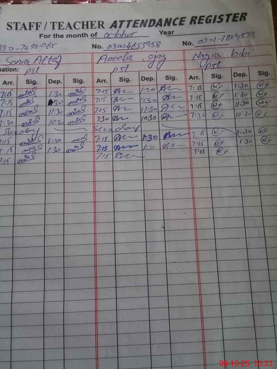| CNIC | Full Name | Designation | R/C | Absence During Last Calender Month |