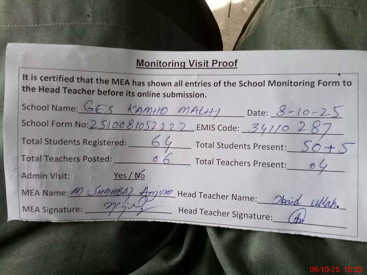 | EMIS Code: 34110287 | Name of School: GES KAMO MALHI | |||