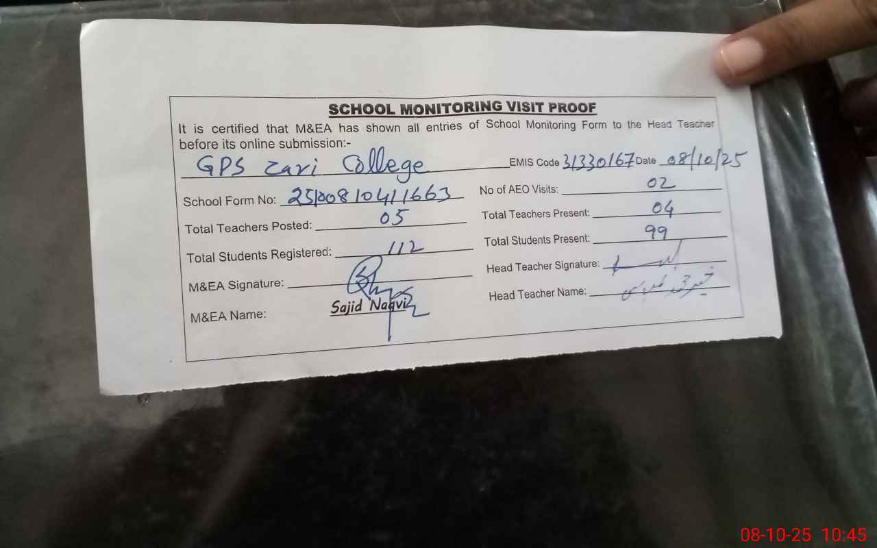 | EMIS Code: 31330167 | Name of School: GPS ZARI COLLEGE | |||