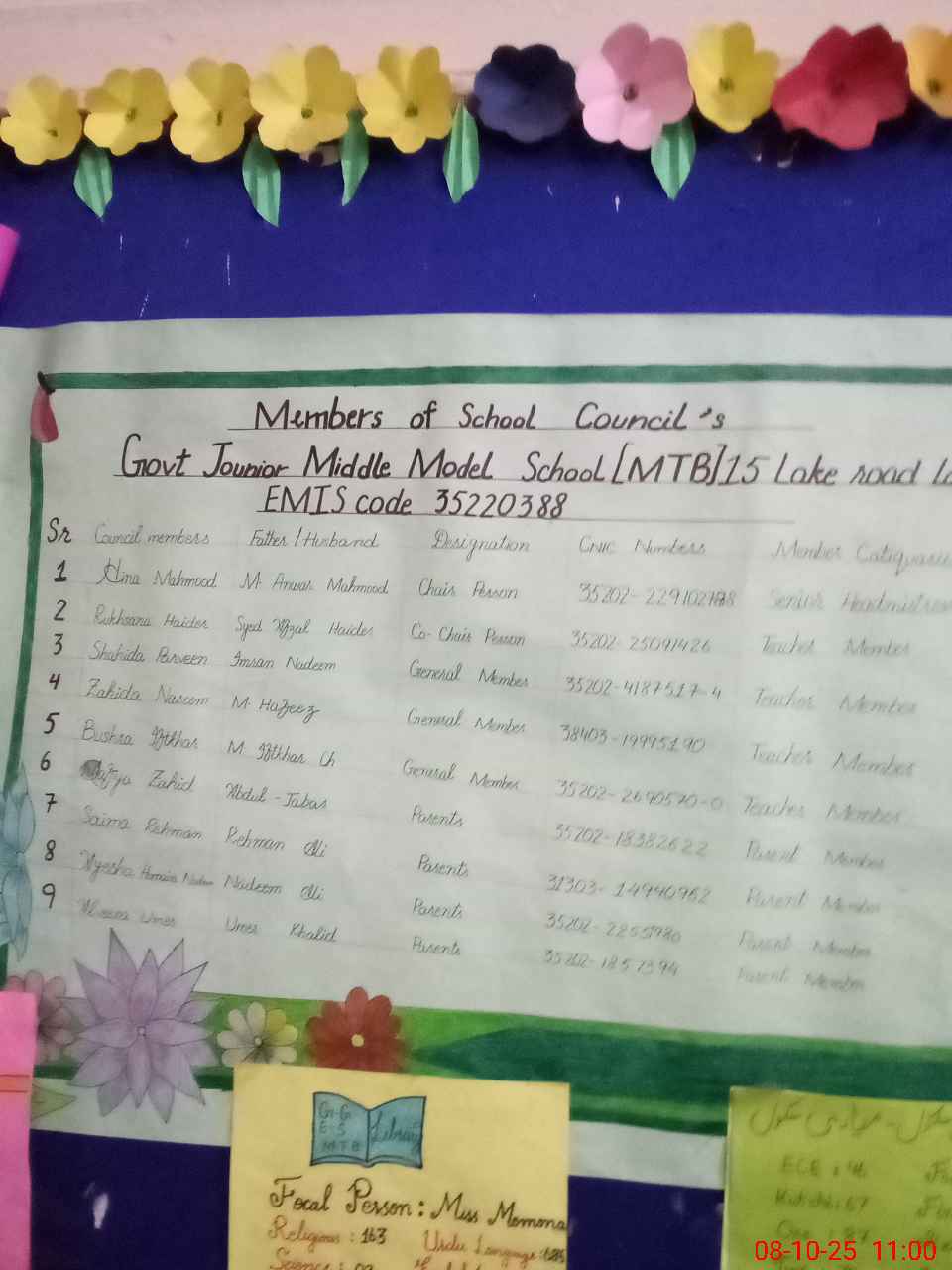 | Name: HI**** ME**** Designation: (School Headmaster's/Headmistress's) SENIOR HEAD MISTERS Phone/Cell Number: 03**** |