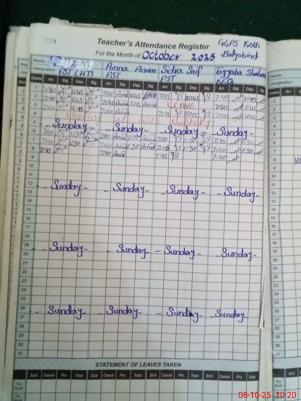 | Leave | Duty | Absent | Maternity | Medical | Ex- Pak |