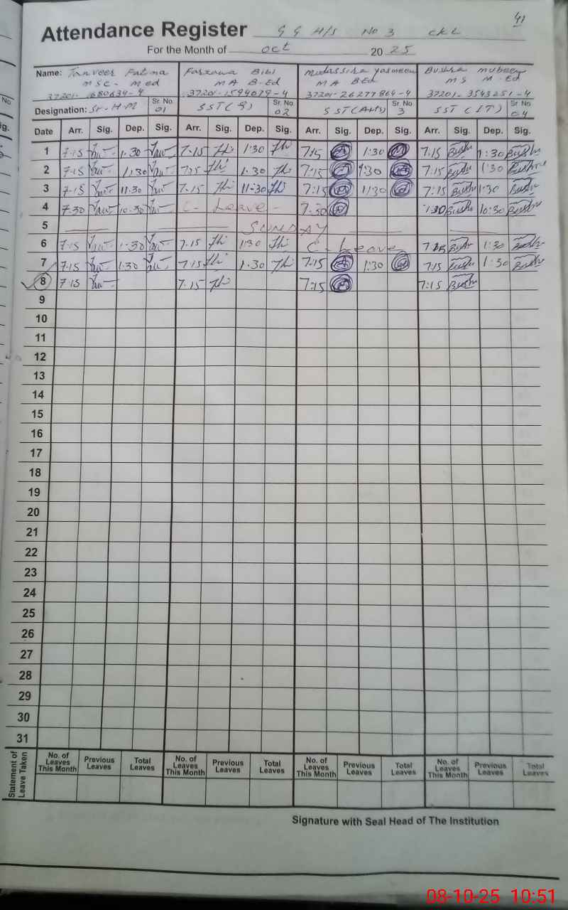 | 36**** | Ra**** Na**** | 1 | 30 | 0 | 0 | 30 | 0 | 0 | 0 | 0 | 0 | Maternity | |