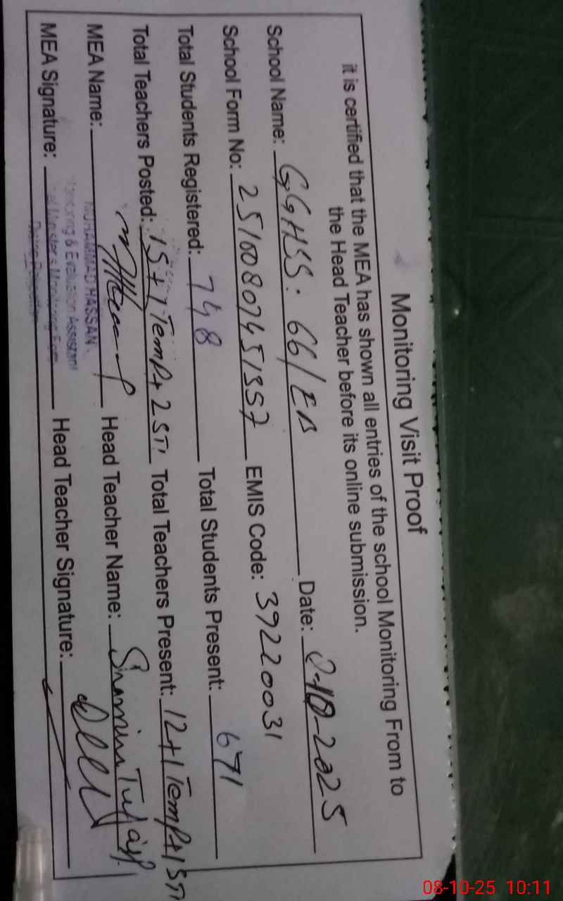 | EMIS Code: 39220031 | Name of School: GGHSS CHAK NO.66 EB | |||