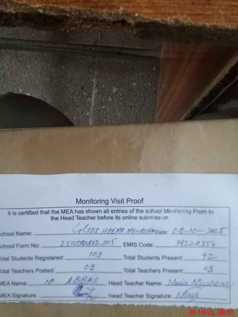| EMIS Code: 39220354 | Name of School: GGPS HEEMAN MEHROOKA | |||