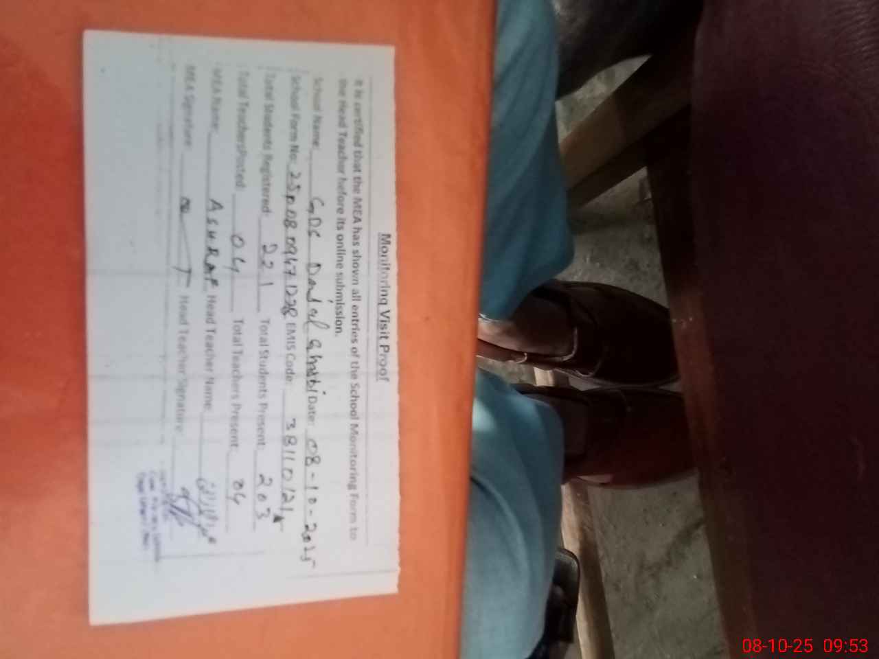 | Attendance Register | Head Teacher | MEA with School | Visit Proof |