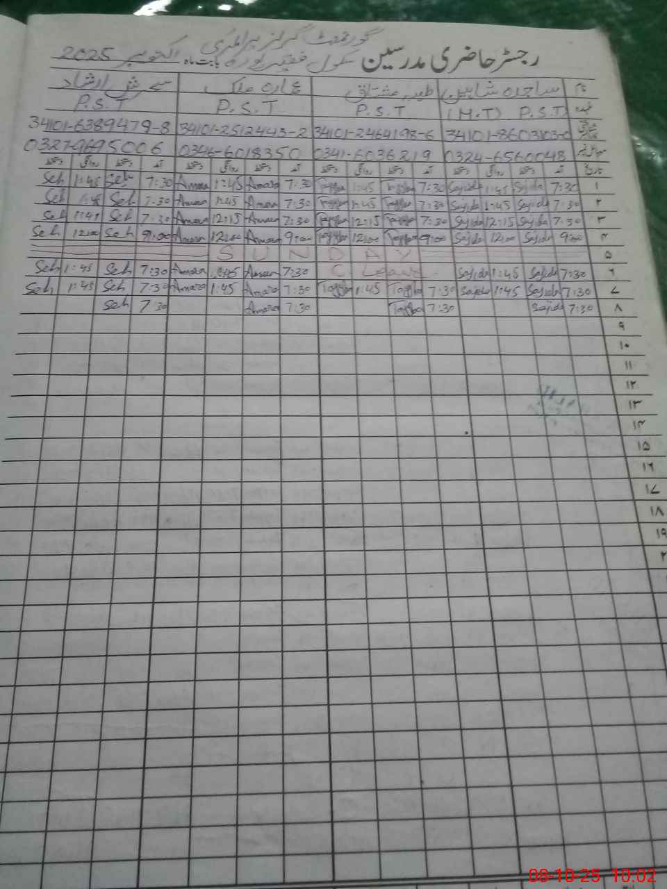 | Name: TA**** TA**** Designation: (School Headmaster's/Headmistress's) PST Phone/Cell Number: 03**** |