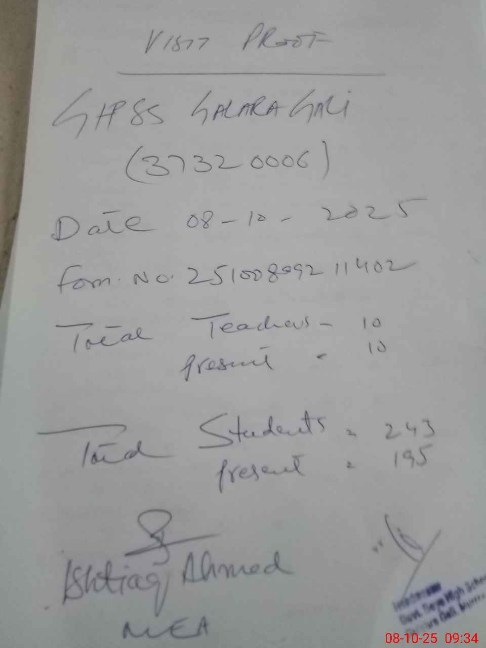 | Attendance Register | Head Teacher | MEA with School | Visit Proof |