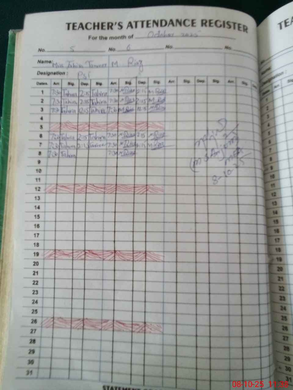 | Name: AS**** IR**** Designation: (School Headmaster's/Headmistress's) EST Phone/Cell Number: 03**** |