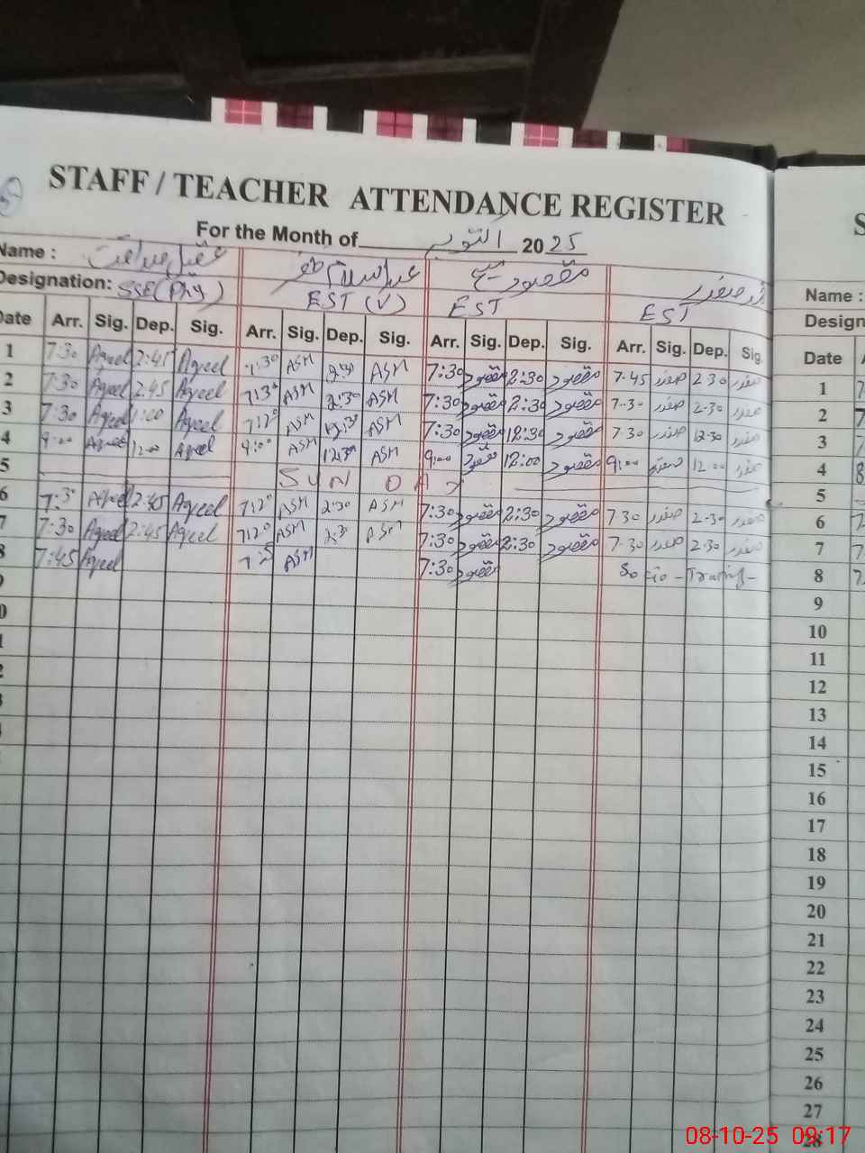 | 34**** | Mu**** Ab**** Ba**** | PST | Regular | 0 | 0 | 0 | 0 | 0 | 0 | 0 | 0 | 0 | Absent (Un-Authorized) |