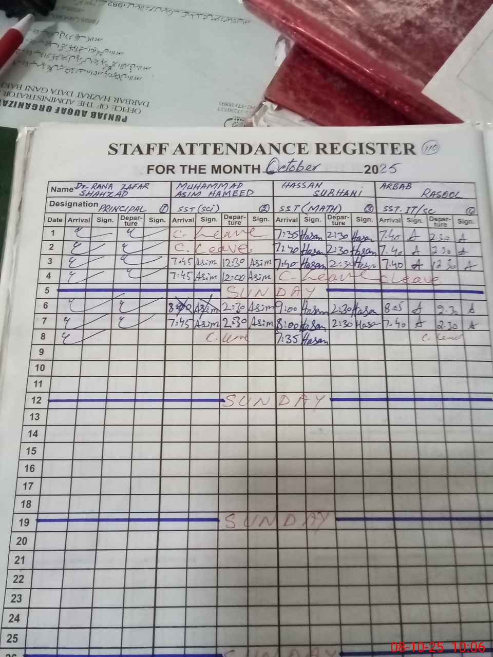 | 35**** | Ab**** Re**** Ar**** | PST | Regular | 0 | 0 | 0 | 0 | 0 | 0 | 0 | 0 | 0 | Exam Duty |