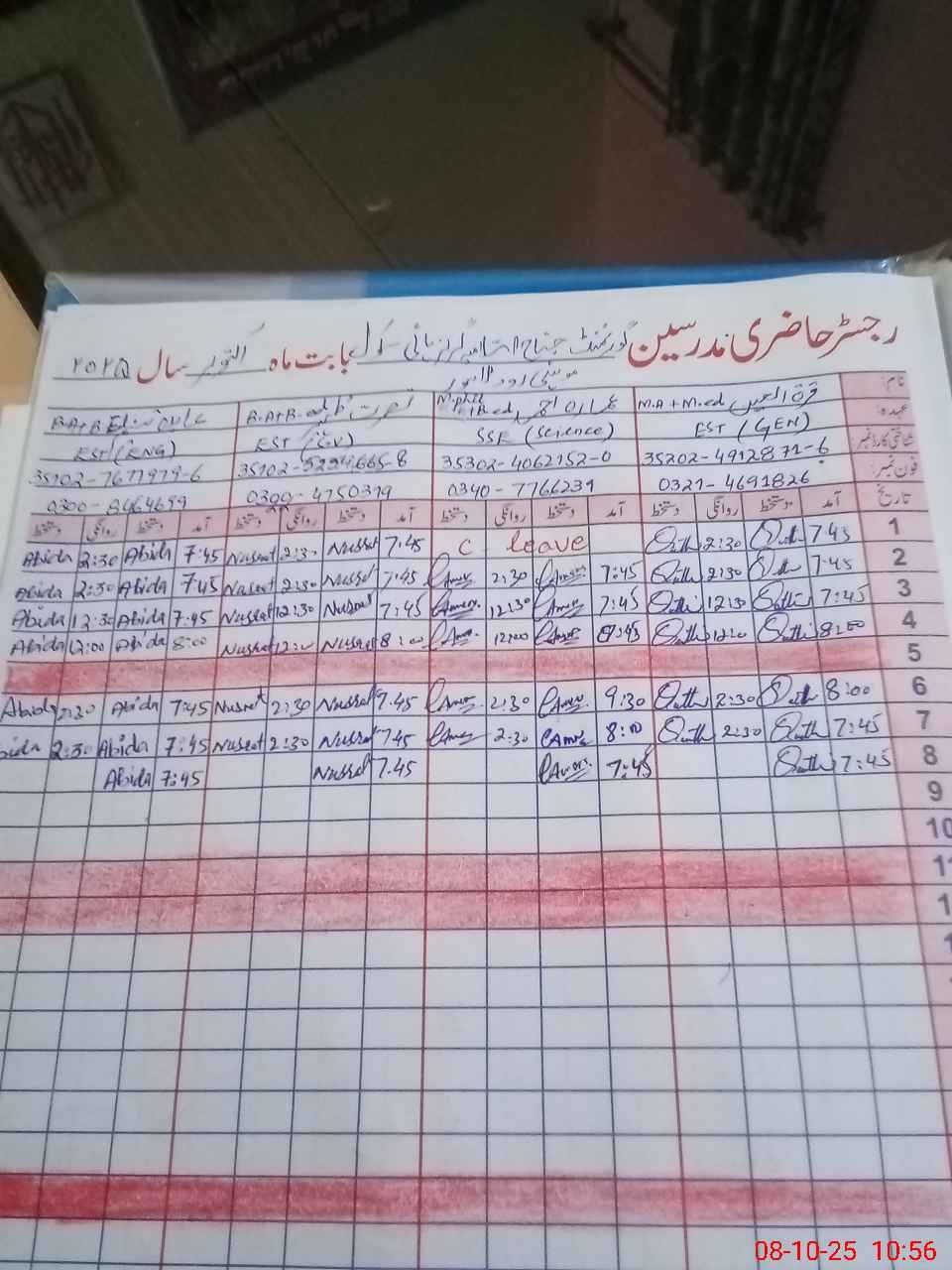 | Name: Qu**** UlAi**** Designation: (School Headmaster's/Headmistress's) EST Phone/Cell Number: 03**** |