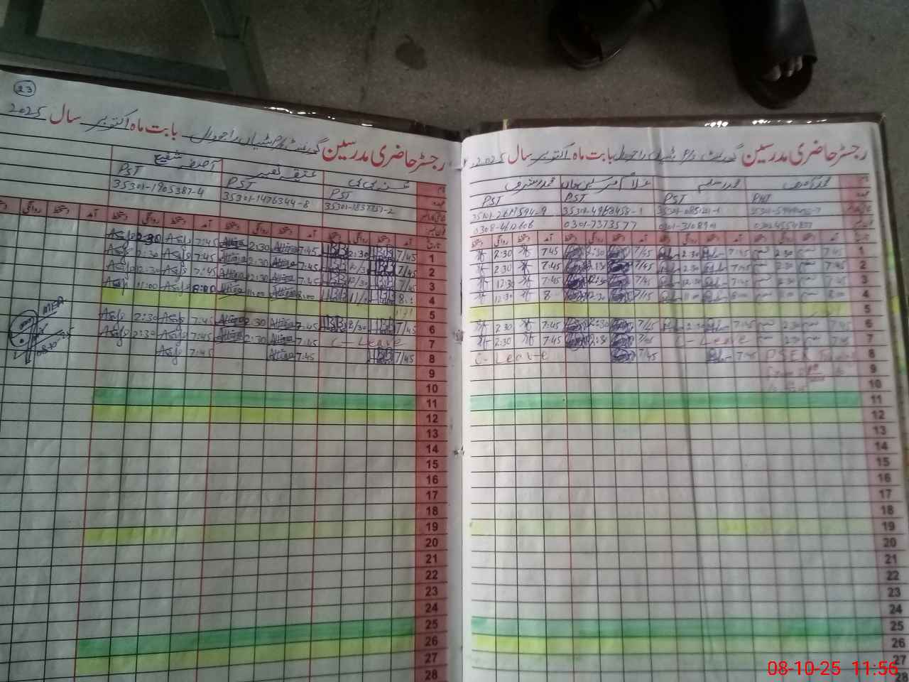 | CNIC | Full Name | Designation | R/C | Absence during last cal. month |
