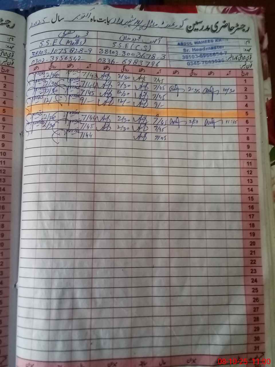 | Name: AB**** WA**** KH**** Designation: (School Headmaster's/Headmistress's) Headmaster Phone/Cell Number: 03**** |