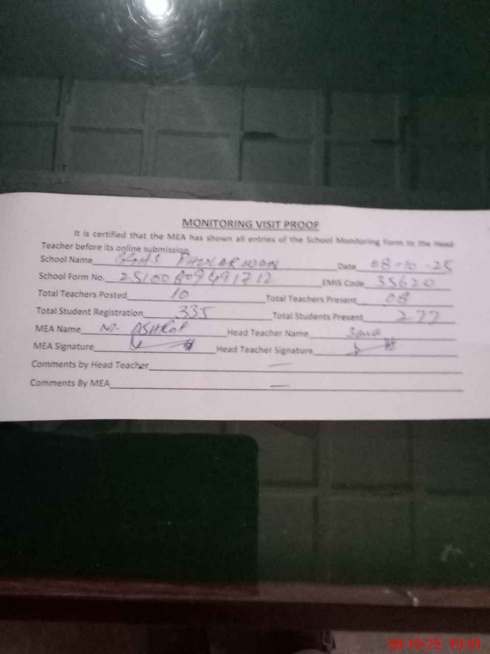 | Certified that this School was Inspected by the Undersigned MEA/DMO Today and the Information Stated Above is as Per Record. | |||||