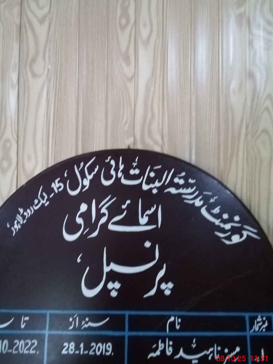 | EMIS Code: 35220085 | Name of School: GGHS MADRASA-TUL-BINAT 15-LAKE ROAD | |||