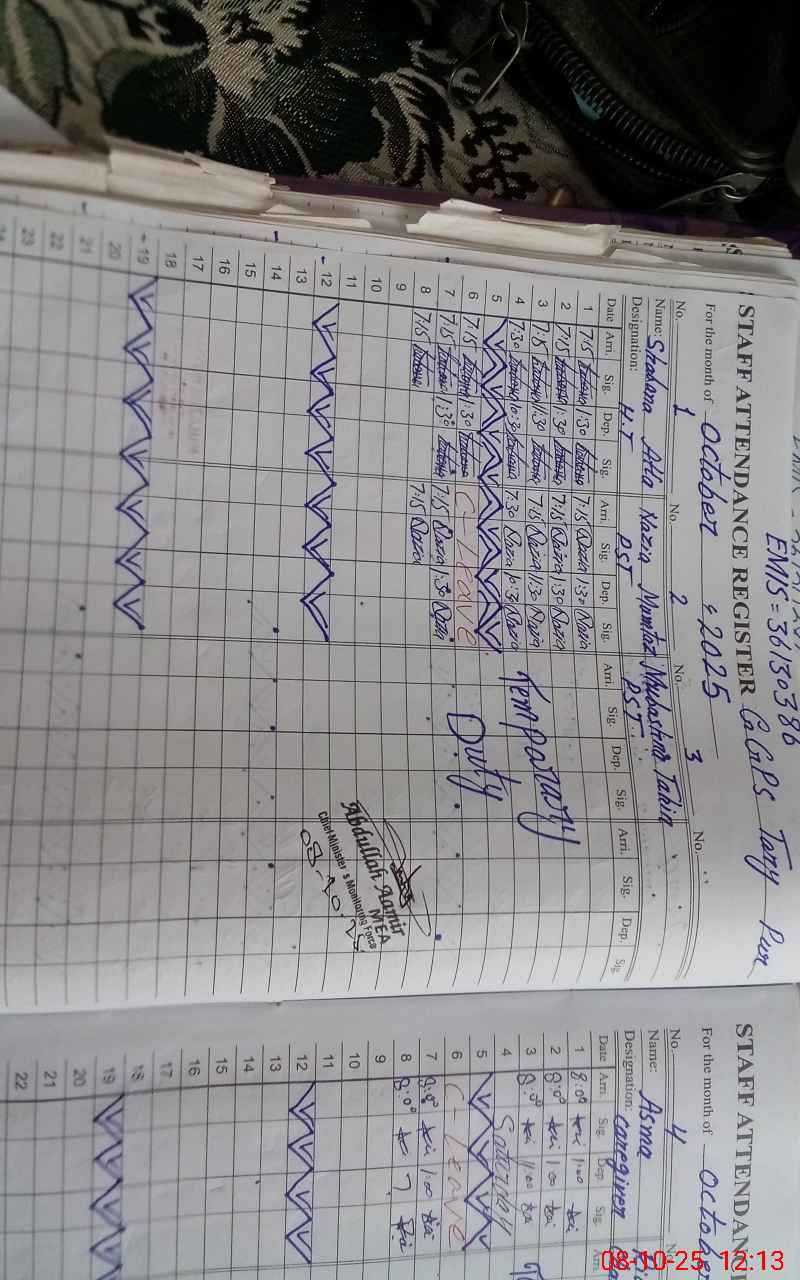 | 36**** | Mu**** Ta**** | 1 | 0 | 0 | 30 | 0 | 0 | 0 | 0 | 0 | 0 | Absent (Un-Authorized) | |
