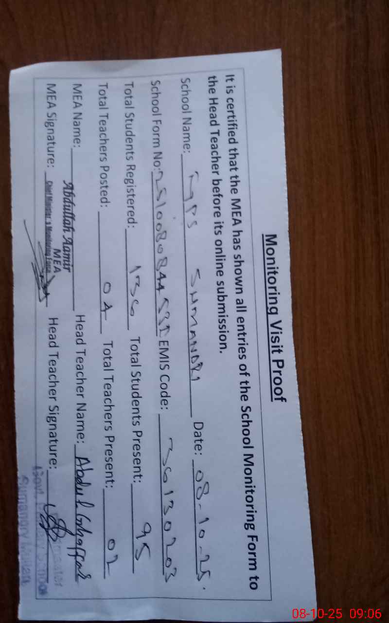 | Attendance Register | Head Teacher | MEA with School | Visit Proof |