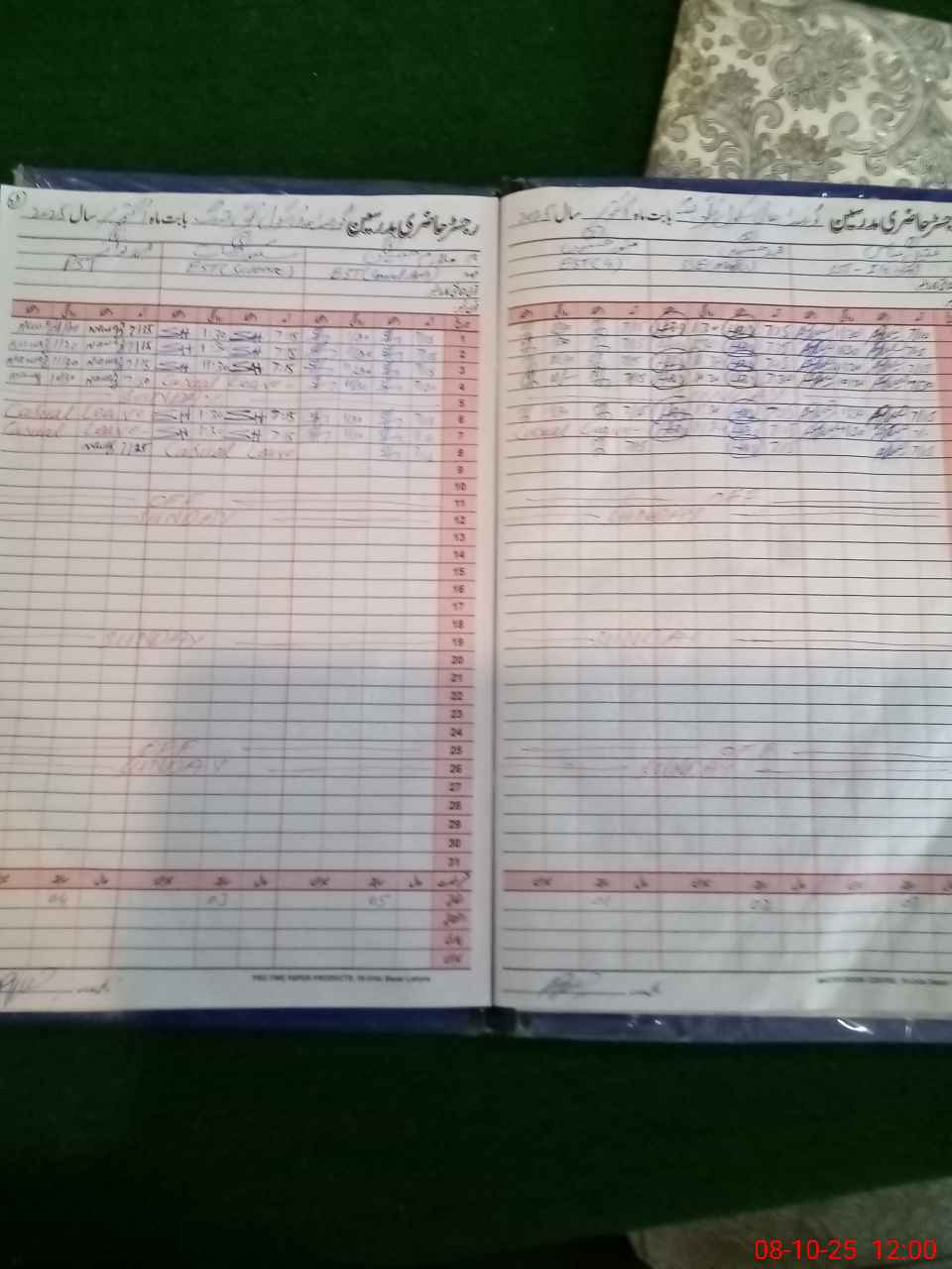 | CNIC | Full Name | Designation | R/C | Absence During Last Calender Month |