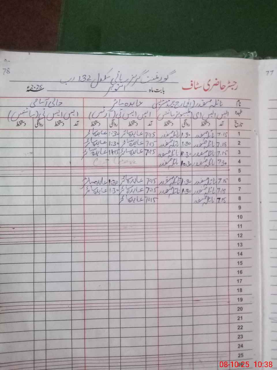 | CNIC | Full Name | Designation | R/C | Absence During Last Calender Month |