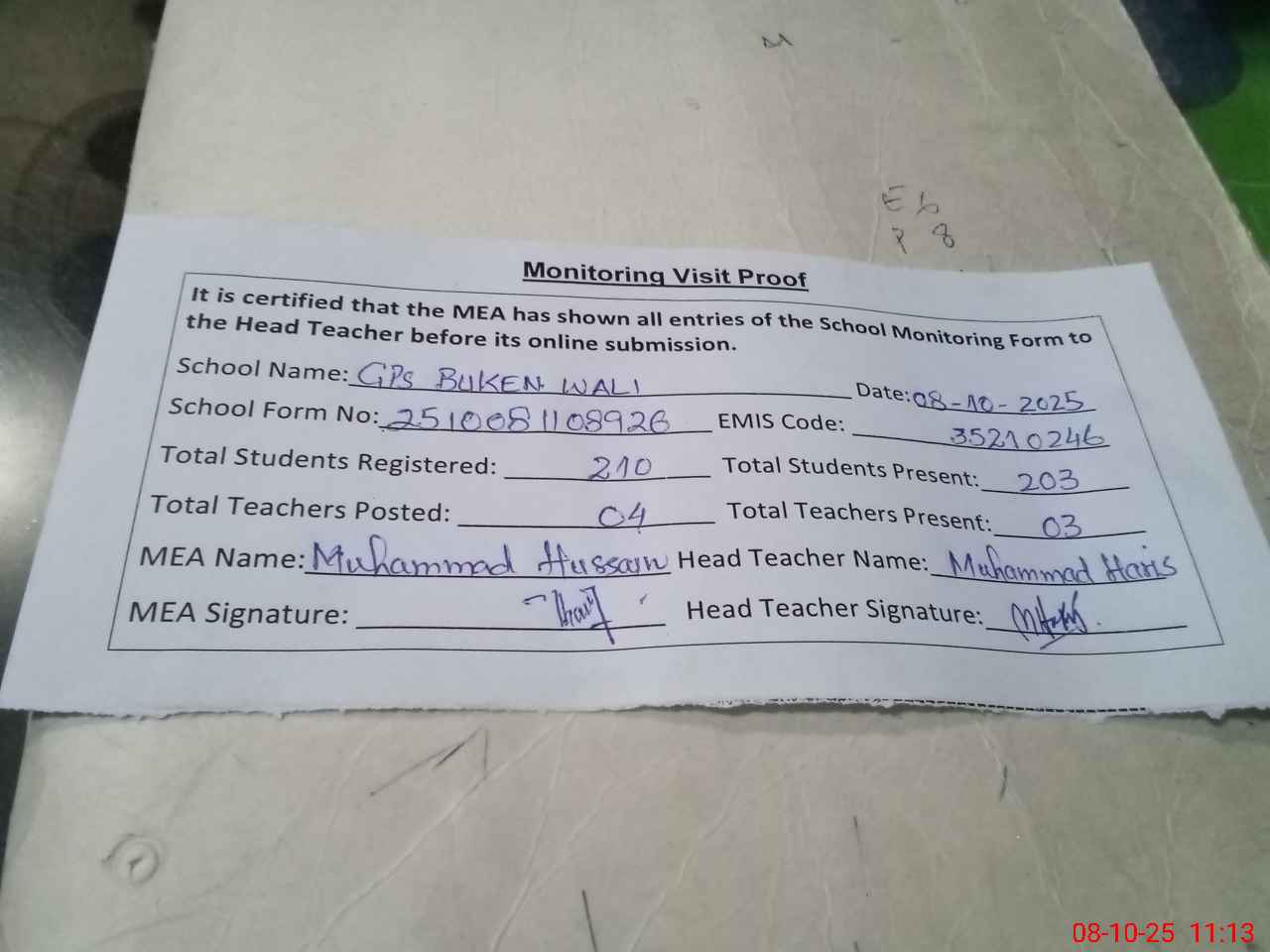 | EMIS Code: 35210246 | Name of School: GPS NEW BUKEN WALI | |||