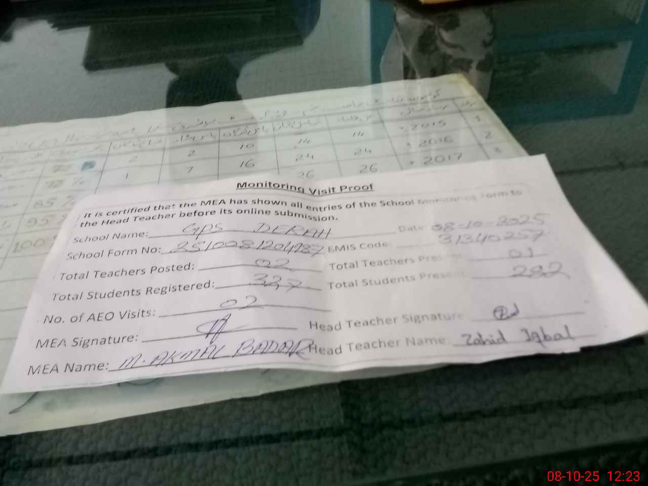 | Attendance Register | Head Teacher | MEA with School | Visit Proof |