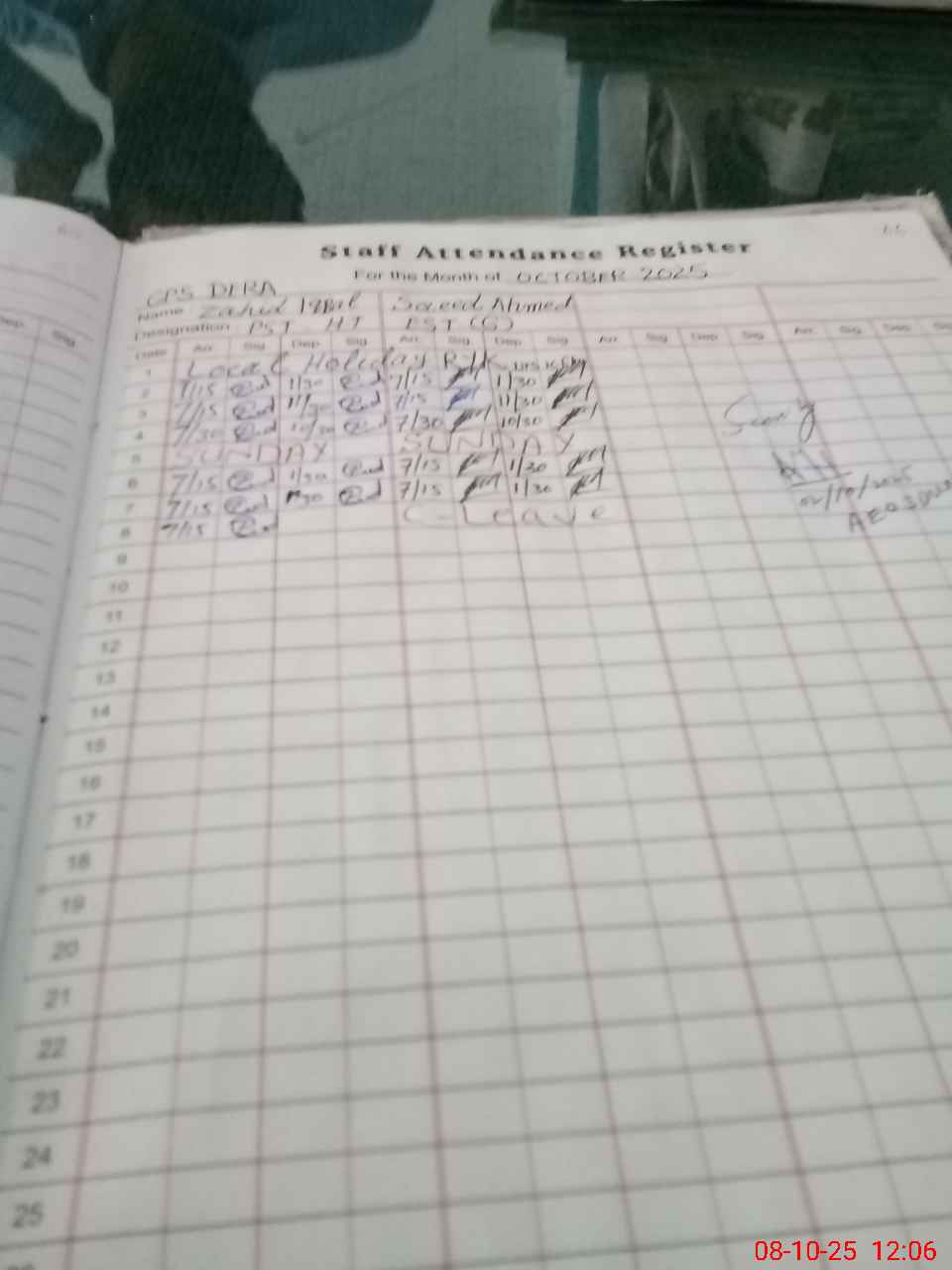 | Name: Za**** Iq**** Designation: (School Headmaster's/Headmistress's) PST Phone/Cell Number: 03**** |