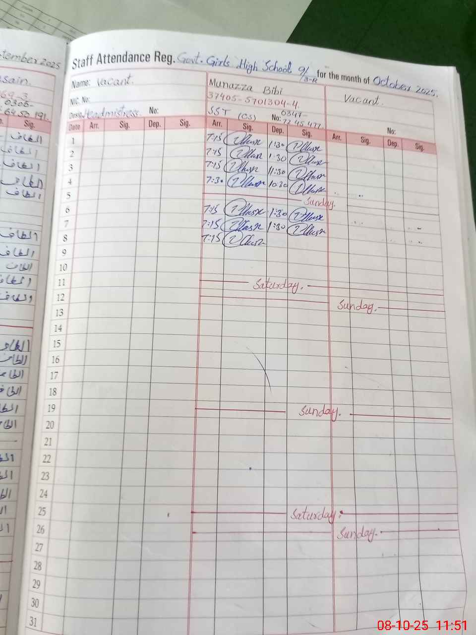 | Remarks (Use Separate Page if Required): Urooj Fatima est is absent since 23 Jan 2025 for 175 days | |||||