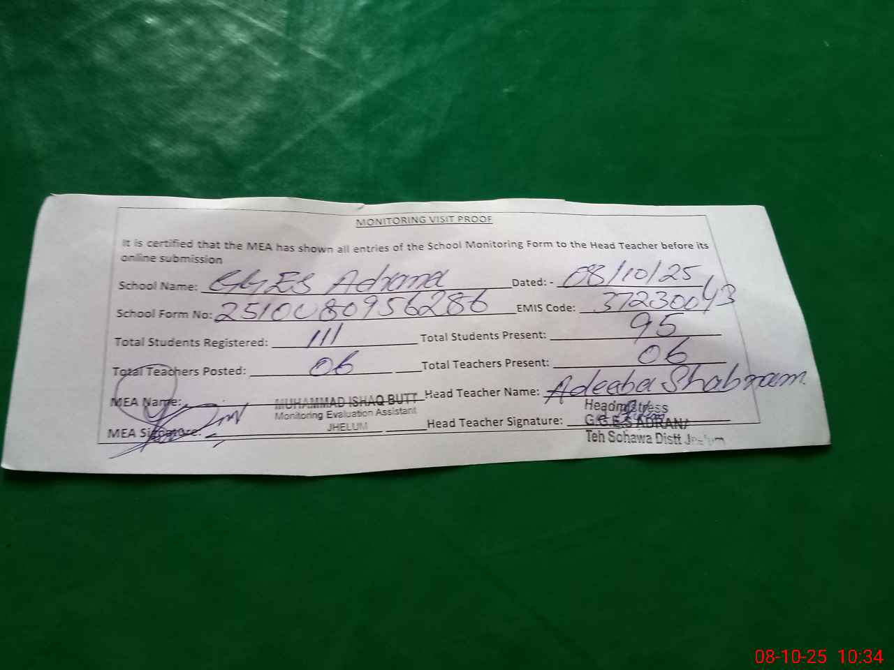 | Certified that this School was Inspected by the Undersigned MEA/DMO Today and the Information Stated Above is as Per Record. | |||||