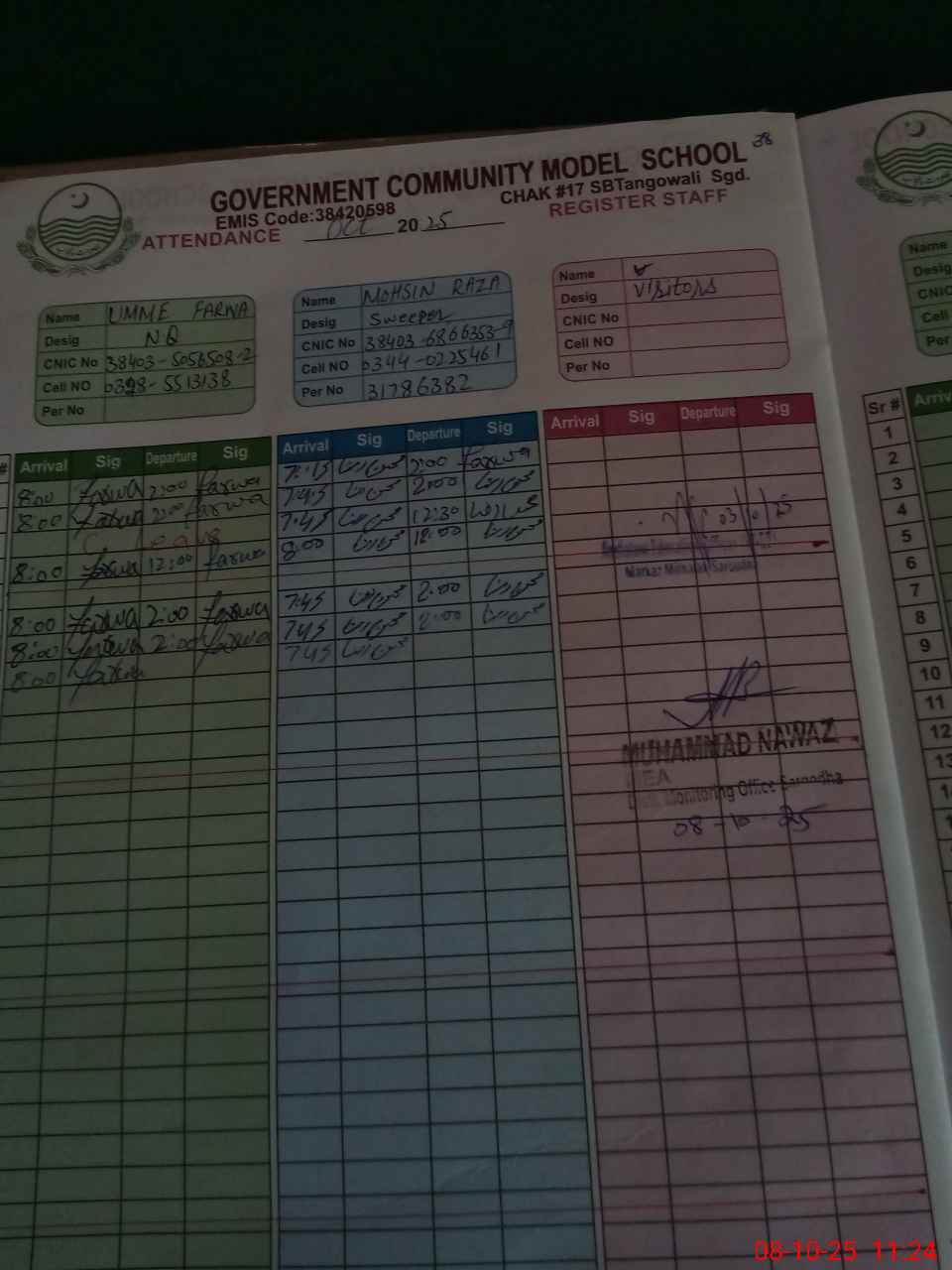 | CNIC | Full Name | Designation | R/C | Absence during last cal. month |