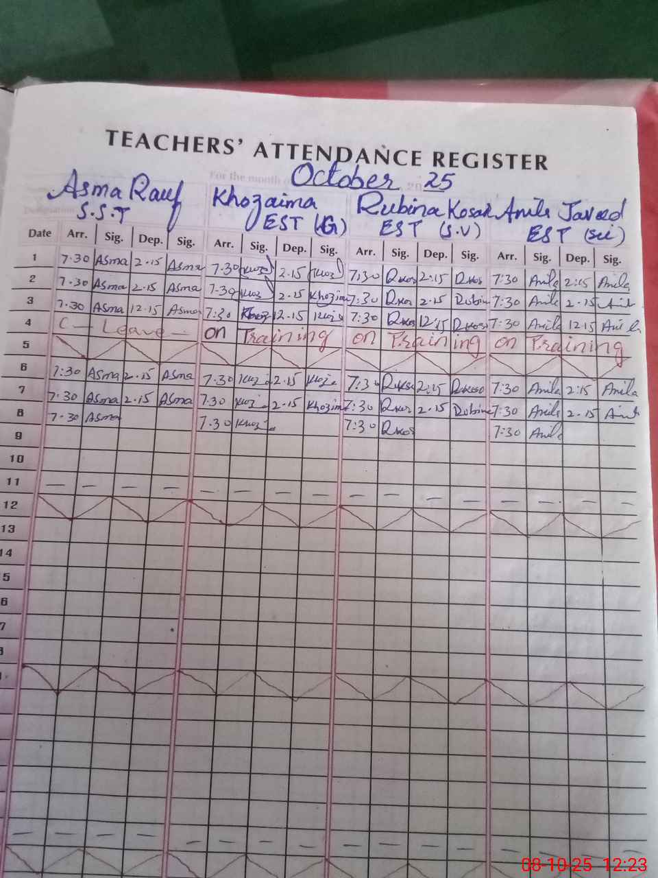 Leave Type | Remarks for today (Leave,Training, Exam,Absent,Late, Other duty) |