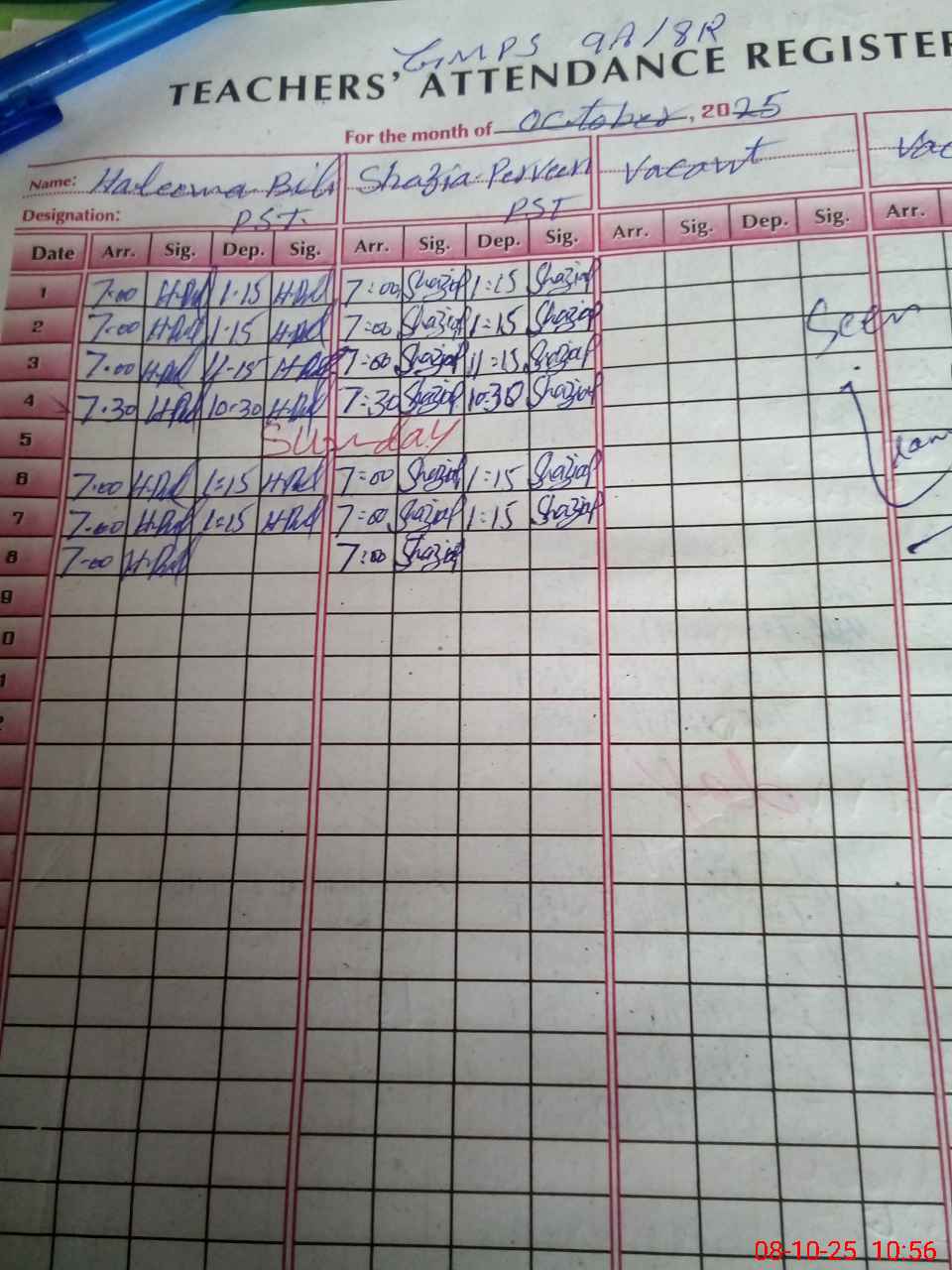 | Name: HA**** BI**** Designation: (School Headmaster's/Headmistress's) PST Phone/Cell Number: 03**** |