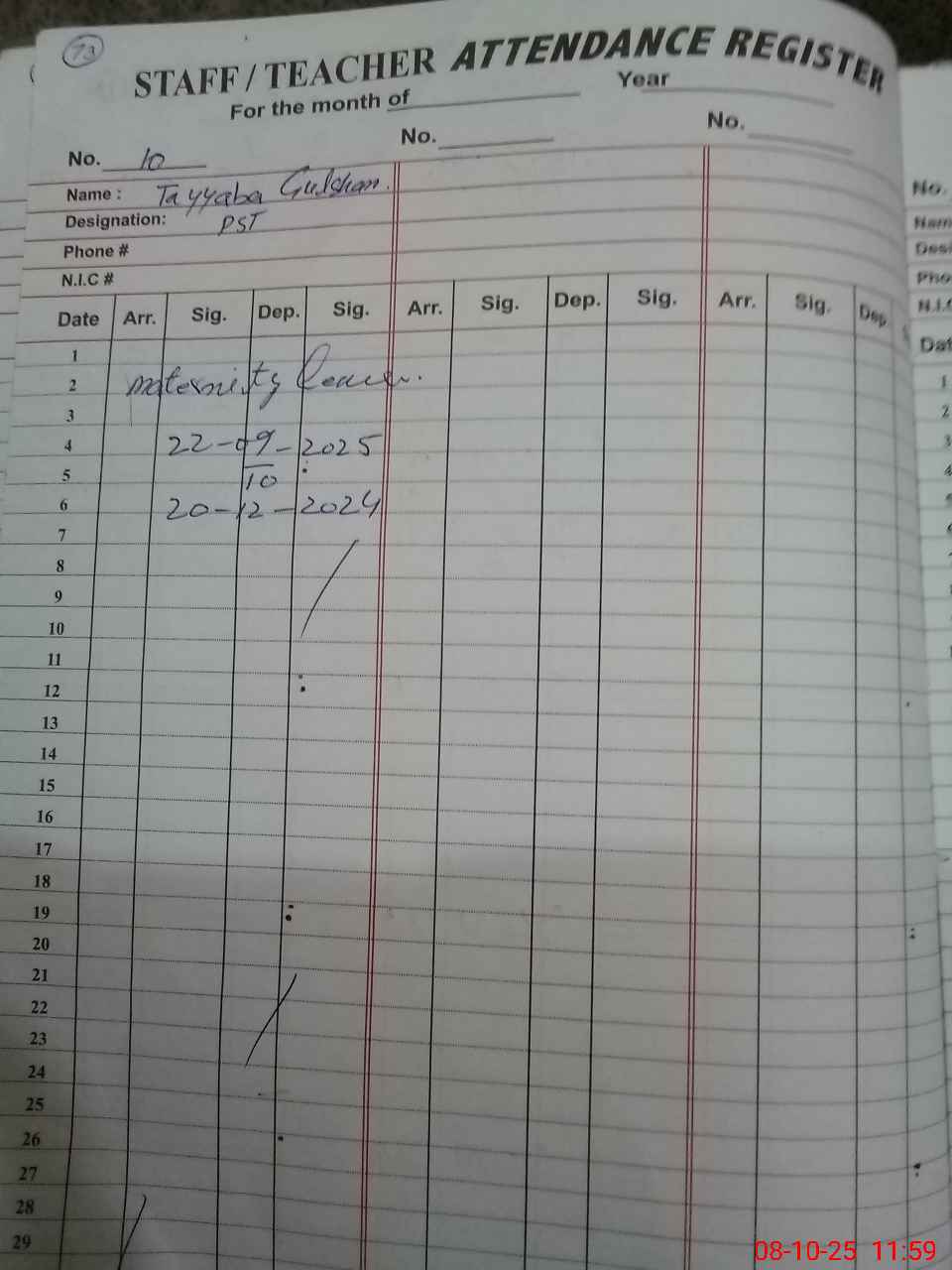 | 34**** | Ta**** Gu**** | PST | Regular | 0 | 0 | 0 | 0 | 0 | 0 | 0 | 0 | 0 | Maternity |