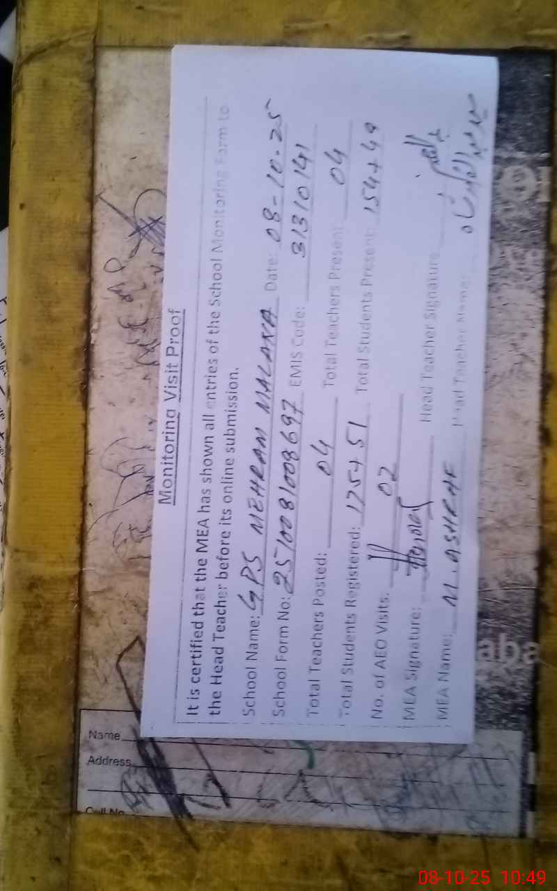 | Attendance Register | Head Teacher | MEA with School | Visit Proof |