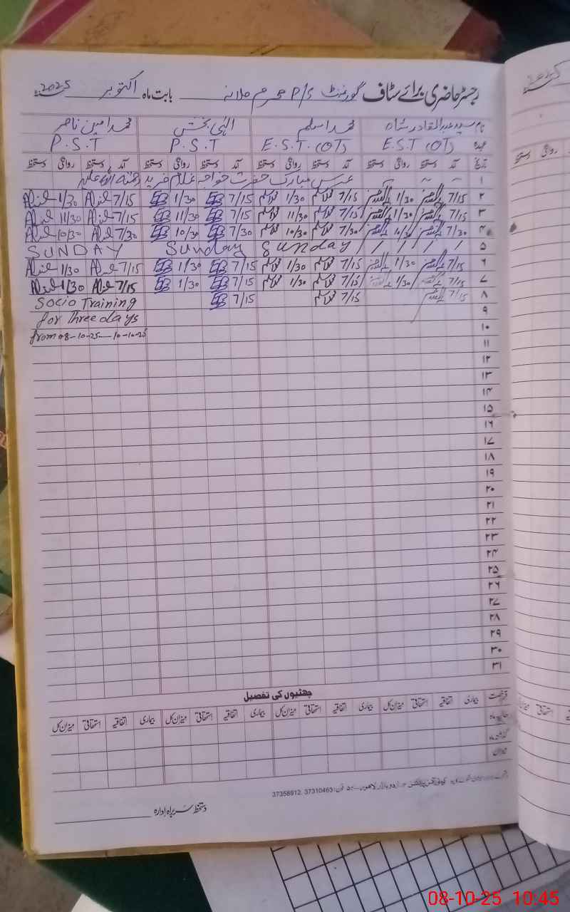 | Name: Sy**** Ab**** Qa**** Sh**** Designation: (School Headmaster's/Headmistress's) EST OT Phone/Cell Number: 03**** |