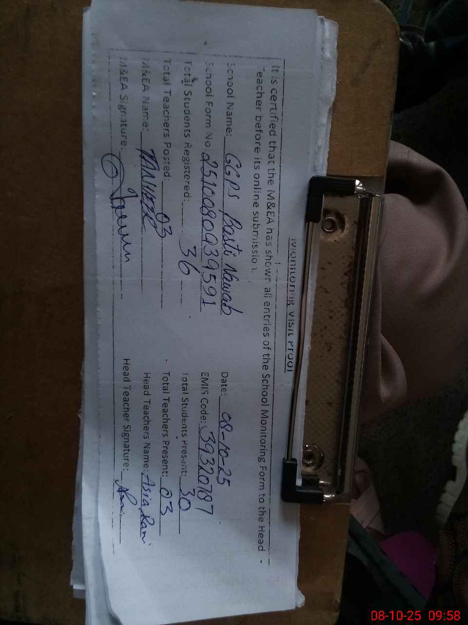 | EMIS Code: 39320787 | Name of School: GGPS 31/2-L BASTI NAWAB WALA | |||