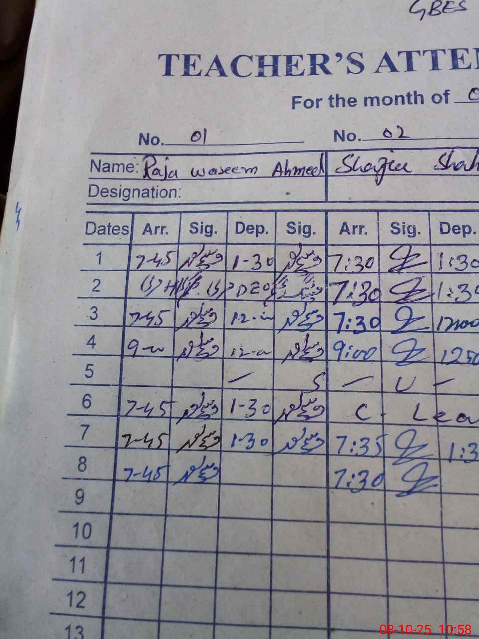 | CNIC | Full Name | Designation | R/C | Absence During Last Calender Month |